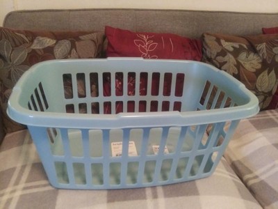 Om the first thing I noticed about this basket was not the color (although, I love the teal), but I noticed the handles! They are smooth and soft and won't leave those treacherous red marks on your hands from carrying laundry back and forth.