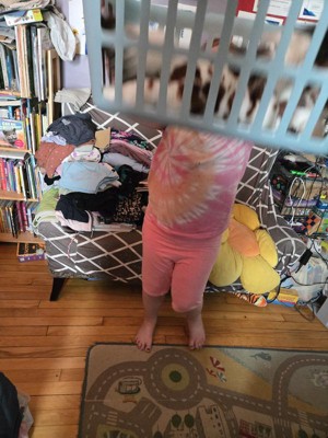 [This review was collected as part of a promotion.] This Brightroom laundry basket is a great first basket for college student or young person in their first apartment. It’s great but really small. I was able to fit my toddlers clothes in there, but for a larger family load of laundry I would definitely choose a larger and more sturdy basket. I do like the color of this. It’s super cute! It also was not very flimsy so it is a sturdy basket for the price. I received an incentive to write this review.