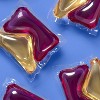Avoid breaking pacs. Do not handle pacs with wet or moist hands. Do not expose pacs to moisture. Do not cut or puncture pacs. If pacs stick together, do not try to separate them., WARNING: HARMFUL IF PUT IN MOUTH OR SWALLOWED. EYE IRRITANT. Pacs can burst if children put them in mouth or play with them. See warning on back label. KEEP OUT OF REACH OF CHILDREN. Call poison control center immediately (1-800-222-1222) if detergent gets in mouth or eye or on skin. Immediately and thoroughly rinse eye or skin with water for at least 15 minutes. If swallowed, rinse out mouth, do not induce vomiting., WARNING: Concentrated detergent pacs can burst if children put them in mouth or play with them. The liquid inside is harmful if put in mouth, swallowed, or in eyes. Contains concentrated anionic and/or nonionic surfactants, enzymes. Keep pacs out of reach of children. Store container where children cannot reach or climb to it, out of sight and in a secure place. Keep container fully closed. Never leave any pacs out of container. DO NOT let children handle pacs, even if supervised., NEVER leave pacs outside this container. Do not use for pre-treating or hand-washing. Safe for septic systems., Contains fragrance allergen(s).Shipping details