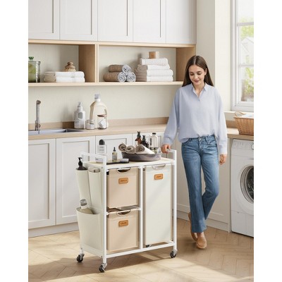 - Double-section laundry hamper with 2 removable bags makes sorting laundry easy and convenient.