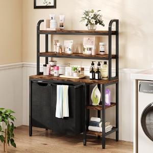 Laundry Hamper with Shelf, 2-Section Sorter, Pull-Out Bags & Storage Racks, Rustic Brown Laundry Basket