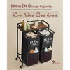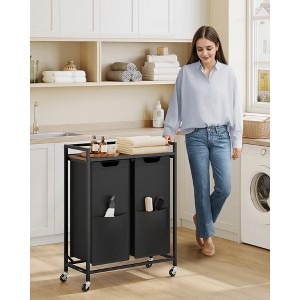 This versatile laundry sorter combines functionality and mobility, featuring two spacious 29-gallon compartments with pull-out, removable Oxford fabric bags (water-resistant) and front pockets for small items. The sturdy steel-frame cart includes a guarded top shelf for storing detergents or towels, while four wheels (two locking) ensure easy movement. Ideal for 3-person households, it supports up to 44 lbs on the shelf and prevents sagging with reinforced bag bases. Material: Particleboard, Steel, Oxford Fabric Product Size: 24.8"L x 12.6"W x 36.6"H (63 x 32 x 93 cm) Product Weight: 12.1 lb (5.5 kg) Max. Static Load Capacity of Top Shelf: 44 lb (20 kg) Max. Static Load Capacity of Each Bag: 17.6 lb (8 kg) Max. Static Load Capacity Total: 79.2 lb (36 kg)