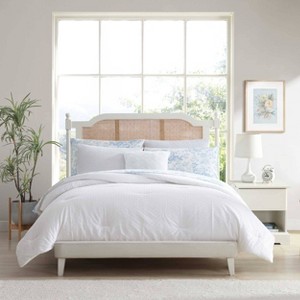 Laura Ashley 6pc Twin Extra Long Margaret Microfiber Comforter Set White: Botanical Pattern, Polyester Fill
