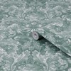 A full roll of this product is 20.5 inches wide and 396 inches long. A full roll can cover up to 56 square feet depending on the design match and pattern repeat. A sample of this product is 8 inches by 11 inches. Timeless and elegant, this ornate damask print is perfect for creating a classic feel for your walls. Featuring curling acanthus plants and leaves around primula, primrose plants, roses and peony flower heads, this design is a botanical dream. In the jade green color palette, this wallpaper is daring enough to add a pop of color without being overwhelming. Offers a smooth, untextured finish. Straight match with a 20.86 inch pattern repeat.