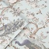 A full roll of this product is 20.5 inches wide and 396 inches long. A full roll can cover up to 56 square feet depending on the design match and pattern repeat. A sample of this product is 8 inches by 11 inches. Choose glamour and sophistication with the stunning Belvedere wallpaper. Classically ornate, this print features elegant blue peacocks perched on climbing branches and timeless florals. In the duck egg colorway, it is serene and stately in a muted color palette. Offers a smooth, untextured finish. Offset match with a 25.2 inch pattern repeat.