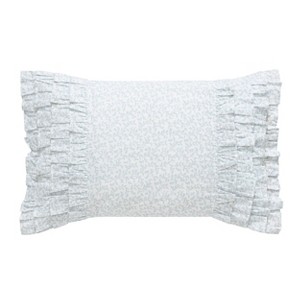Garden inspiration brings natural beauty to any space, making Laura Ashley’s floral designs a perfect decorating choice. The Chloe ruffle cottage blue throw pillow features a beautiful vine design with ruffled sides. Pillow measures 14"l x 20"w. Cotton pillow features a polyester fill and is machine washable. Features an easy overlap closure.