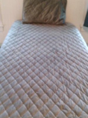 [This review was collected as part of a promotion.] This Laura Ashley quilt set is absolutely luxurious and adds a touch of style and elegance to my bedroom. The dark green color, diamond pattern, and soft velvet make this quilt set a lovely year round choice of comfort. It has a thin effect, but is quite weighty. I like my bed cover a bit larger to tuck my feet under, and so this fits my Twin XL size bed wonderfully. It does hang over the sides more than your average Twin XL size cover, but without touching the floor and with the addition of two matching pillow shams and an extra small pillow cover I felt like royalty. I can’t say enough about this quilt set, it is so beautiful, high quality, durable, washes well, and would without a doubt make a fabulous gift. This is a set that will last a long time and that you will be proud to own.