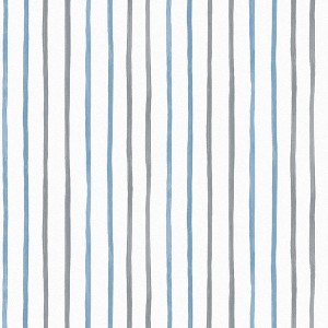 A full roll of this product is 20.5 inches wide and 396 inches long. A full roll can cover up to 56 square feet depending on the design match and pattern repeat. A sample of this product is 8 inches by 11 inches. Create a subtle and chic children's space with the Painterly Stripe wallpaper. The Painterly Stripe pattern is a timeless design featuring vertical blue stripes on a white background. Originally added to the Laura Ashley archive in 2015, this wallpaper is perfect for use in children's bedrooms. Offers a smooth, untextured finish. Straight match with a 25.2 inch pattern repeat.