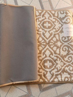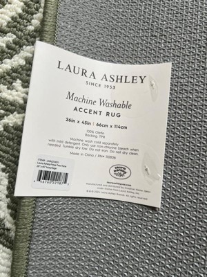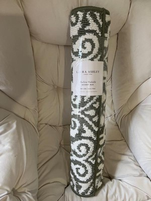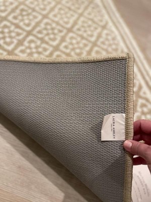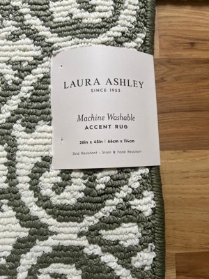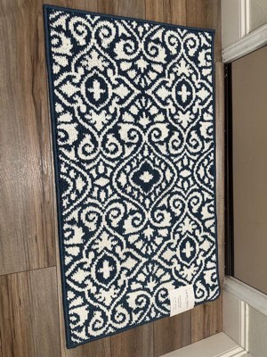 [This review was collected as part of a promotion.] I placed this lovely accent rug by Laura Ashley by the entryway of our house, and it brightened up that area. I had a dark colored accent rug, so this lovely patterned navy rug brought the entryway back to life. It was lovely against my dark wooden floors. The rubber back is non slippery, so it does not move, which I like. It's pretty and it's the perfect size.