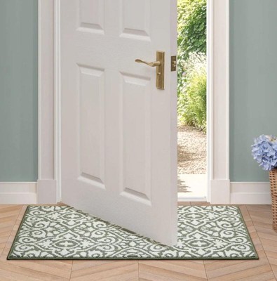 [This review was collected as part of a promotion.] Beautiful design and perfect size rug for my front door. It's easy to wash and looks great in my house. It's classy and has a beautiful pattern a d its non slip, so it stays in place.