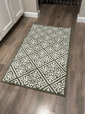 [This review was collected as part of a promotion.] I really like this rug for my entry way. The color and design goes well with my decor. The bottom has non slip grip so I haven’t had an issue with it moving around. It was easy to get in the wash and it air dried pretty quick too.