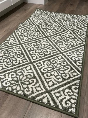 [This review was collected as part of a promotion.] I needed a new rug for my kitchen so thank you influenster. The quality is really nice. It doesn't slide or move once laid flat. I like the simple yet cute pattern. I think cleaning this would be better by hand but you could lightly wash this and it would be fine.