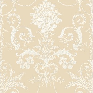 A full roll of this product is 20.5 inches wide and 396 inches long. A full roll can cover up to 56 square feet depending on the design match and pattern repeat. A sample of this product is 8 inches by 11 inches. A Laura Ashley classic, Josette is an ornate and elegant damask. Featuring glamorous chandeliers and romantic rose bouquets, this wallpaper is undeniably elegant. Our French-inspired damask design adds a contemporary edge in cream and white tones that is sure to add class to any living space. Offers a smooth, untextured finish. Straight match with a 25.2 inch pattern repeat.