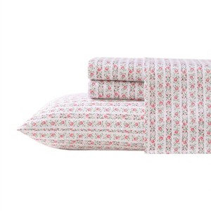 - The Laura Ashley Marta Stripe Sateen Sheet Set Features A Classic Pink Floral Paisley Design On A White Ground