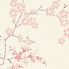 A full roll of this product is 20.5 inches wide and 396 inches long. A full roll can cover up to 56 square feet depending on the design match and pattern repeat. A sample of this product is 8 inches by 11 inches. The timeless style of the Oriental Blossom wallpaper creates a soft and feminine look for your interior walls. Shades of pink detailing on an off-white background are serene and elegant. This wallpaper is perfect for bedrooms and living areas where you want to add a soft floral touch. Offers a smooth, untextured finish. Offset match with a 25.2 inch pattern repeat.
