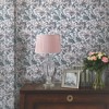 A full roll of this product is 20.5 inches wide and 396 inches long. A full roll can cover up to 56 square feet depending on the design match and pattern repeat. A sample of this product is 8 inches by 11 inches. Classically ornate, Portia is an intricate and appealing print. Accents of paisley and elements of Jacobean style are inspired by antique fabric held within the Laura Ashley archive. This timeless design in pale slate combines simplicity with natural glamour. Textured wallpaper covers minor wall cracks, bumps and imperfections. Offset match with a 20.87 inch pattern repeat.