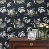A full roll of this product is 20.5 inches wide and 396 inches long. A full roll can cover up to 56 square feet depending on the design match and pattern repeat. A sample of this product is 8 inches by 11 inches. Give the delightful look of classic country charm with the Rosemore wallpaper. This striking vintage floral print was inspired by a painted antique artwork held in the Laura Ashley archive. This design features traditional British flowers on a standout dark blue background. Offers a smooth, untextured finish. Straight match with a 25.2 inch pattern repeat.
