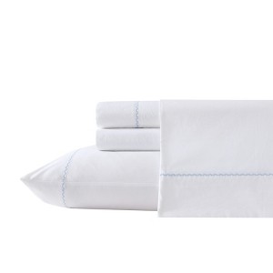 Laura Ashley Scallop Embroidered 100% Cotton Percale Sheet Set