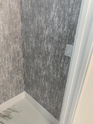 A full roll of this product is 20.5 inches wide and 396 inches long. A full roll can cover up to 56 square feet depending on the design match and pattern repeat. A sample of this product is 8 inches by 11 inches. For a stunning contemporary backdrop to your interior, the Whinfell wallpaper is just what you need. The neutral color palette of moonbeam will compliment your furniture and allow your décor to take center stage. Embellished with metallic, this paper reflects the light for a dazzling and gleaming effect. Offers a smooth, untextured finish. Offset match with a 20.87 inch pattern repeat.