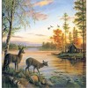 Bring the wilderness indoors with the Deer on Sunset Lake Shower Curtain. The artistic design features a majestic buck and doe standing near a peaceful lake with a cabin in the distance. This unique, art-inspired shower curtain features crisp, vibrant colors and images.