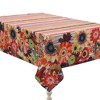 The watercolor collage design of the "Harvest Snippets" tablecloth is sure to bring autumn cheer to your kitchen. This design features a border of autumn foliage, flowers. Stripes in cheery colors of red, green, and yellow create a brilliant centerpiece. You'll love the boho vibes this tablecloth brings to your dining room!