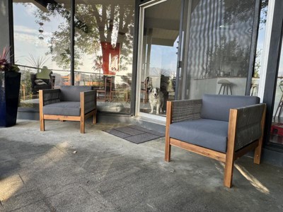 Laurel 2pk Acacia Wood Club Chair Teak/Gray - Christopher Knight Home