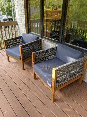 I love these chairs! I got them last summer for my new front porch! I get so many compliments! I left them out over winter (I have a covered front porch) and they still look fabulous!