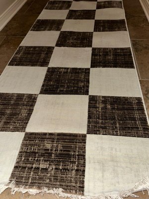[This review was collected as part of a promotion.] Obsessed is an understatement. This is the perfect sized area rug runner for my entryway. It is SO soft and adds such a modern look to the house.. which I love! The fringed ends make the rug even cuter than it already is!! Checkerboard is so IN!!