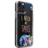 A: The case features a liquid glitter design with planets, astronauts, UFOs, and glow in the dark elements.