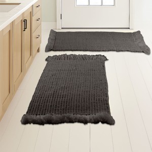 Pamper your feet by stepping out of the shower and onto luxury with the soft Bathroom Mats 2 Piece by Lavish Home. The bathroom rugs set comes with one 17x24-inch bath rug and one 21x34-inch bathmat made of plush cotton with a 1000 GSM thickness, making it soft to the touch as well as absorbent and durable for lasting use in your bathroom, kitchen, or laundry room. Each shower mat has been hand woven on a handloom in India for a truly unique and one-of-a-kind piece of modern bathroom decor.