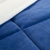 - This cozy reversible bedding is a rich, solid navy-blue color with a white fleece reverse for extra versatility