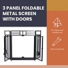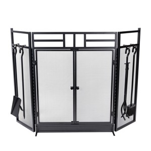 - This 3 panel fire screen features double doors to let you add logs or clean out the fireplace without having to move the screen and has a freestanding design for versatile placement