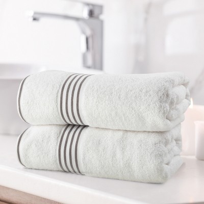 Bring spa quality luxury to the comfort of your own bathroom with the 2-Piece Bathroom Set by Lavish Home. These super soft and plush towels for bathroom are made from 100-percent cotton that offer a lightweight yet comfortable feel against your body and absorb lots of water for fast, efficient use. The neutral black color with high-contrast white stripes along the edges imbues these large bath towels with modern sophistication and enables easy matching with most contemporary color schemes.