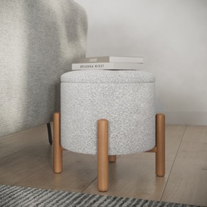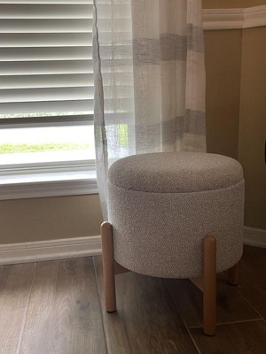 [This review was collected as part of a promotion.] The Lavish Home - Storage wood leg stool w/ light grey boucle fabric has been a great addition to our living room. The storage has been used for some toys and holds a decent amount, we are able to use it for extra seething and it holds well and also a foot rest. It’s very easy to assemble and nice fabric.