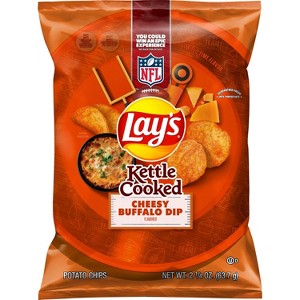 - Includes 1 (2.25 oz) bag of Lay's Kettle Cooked Potato Chips, Cheesy Buffalo Dip flavor