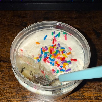 Frosting was ok but cake was crumbly, bland, and not moist. The whole jar could have been one serving but it has almost 3 servings. It should have been extremely delicious for the calories and fat per serving.