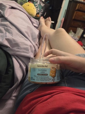 we've tried the birthday cake and the peanut butter ones. both very very sweet but that was to be expected. very good! would purchase again. each container was great for a little something sweet and lasted about 4 servings each.