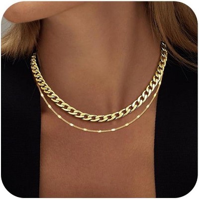 - [Layered Chain Necklace Set]: This trendy 3-piece necklace set features a chic Cuban choker chain, a sleek dot chain, and a dainty long pendant adorned with sparkling cubic zirconia. Wear them together for a bold stacked look, or style each piece solo for simple, elegant layering.