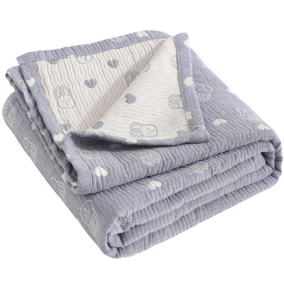 This versatile blanket that will adapt from tummy time to a stroller cover. This blankets grows with your baby and will provide years of comfort and snuggles. This earth friendly double-layer muslin blanket is both light and airy and warm and cozy. Every piece of fabric is wash-tested to ensure the highest quality.