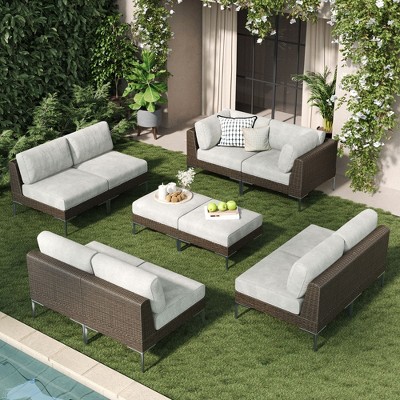LayinSun 10-Piece Large Outdoor Modular L-Shaped Sectional Set with Coffee Table