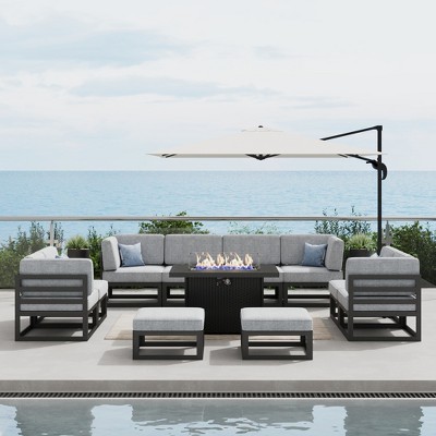 LayinSun 10-Piece Large Outdoor Modular L-Shaped Sectional Set with Propane Fire Pit Table