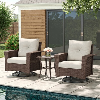 LayinSun 3 Pieces Outdoor Patio Furniture Set, Brown Rattan Wicker Sectional Swivel Rocker Chairs Sets