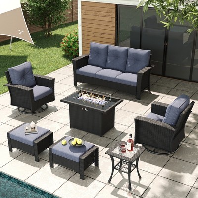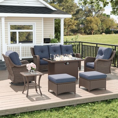 LayinSun 5 Piece Outdoor Furniture Set with Fire Pit Table, Modern Rope Woven Patio Conversation Sofa Set with Olefin Braid and Deep Seating