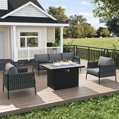 LayinSun 7 Piece Outdoor Furniture Set with Fire Pit Table, Modern Rope Woven Patio Conversation Sofa Set with Olefin