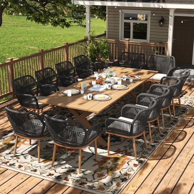 LayinSun 7 Piece Patio Dining Set with Rectangle Slatted Top Table and Dining Chairs