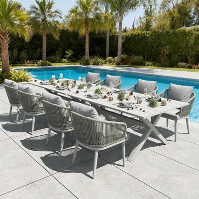 LayinSun 9 Pieces Outdoor Patio Dining Set with Aluminium Rectangular Dining Table and Wicker Rattan Chairs Set