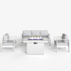 LayinSun Aluminum Furniture Set with Fire Pit Table, 4 Pieces Patio Sectional Conversation Chat Sofa Modern Seating Set