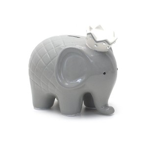 Our line of Coco Elephant banks are some of the most unique piggy banks that you can find! Our NEW gray Coco Elephant Bank comes with a rhinestone encrusted ceramic crown and a classy cross hatch detail, for added texture and design. This bank, like all of our banks, is made from the highest quality ceramic known as dolomite for increased durability. The base is deep glazed, to ensure that the essential color doesn't wear off with repeated handling. To top things off, we add a shiny finishing that keeps the colors of all of the underlying components locked in place.