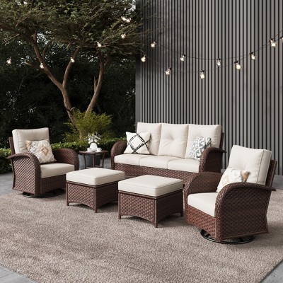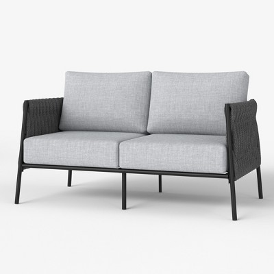 LayinSun Outdoor Patio Woven Rope Sofa, 3-Person Deep Seating Modern Couch 3-Seat for Outside