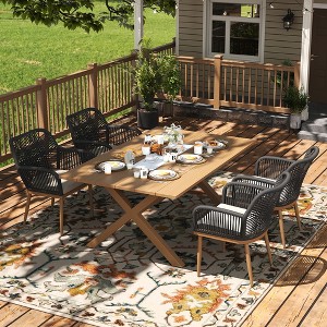 LayinSun Patio Dining Set with Rectangle Slatted Top Table and Dining Chairs